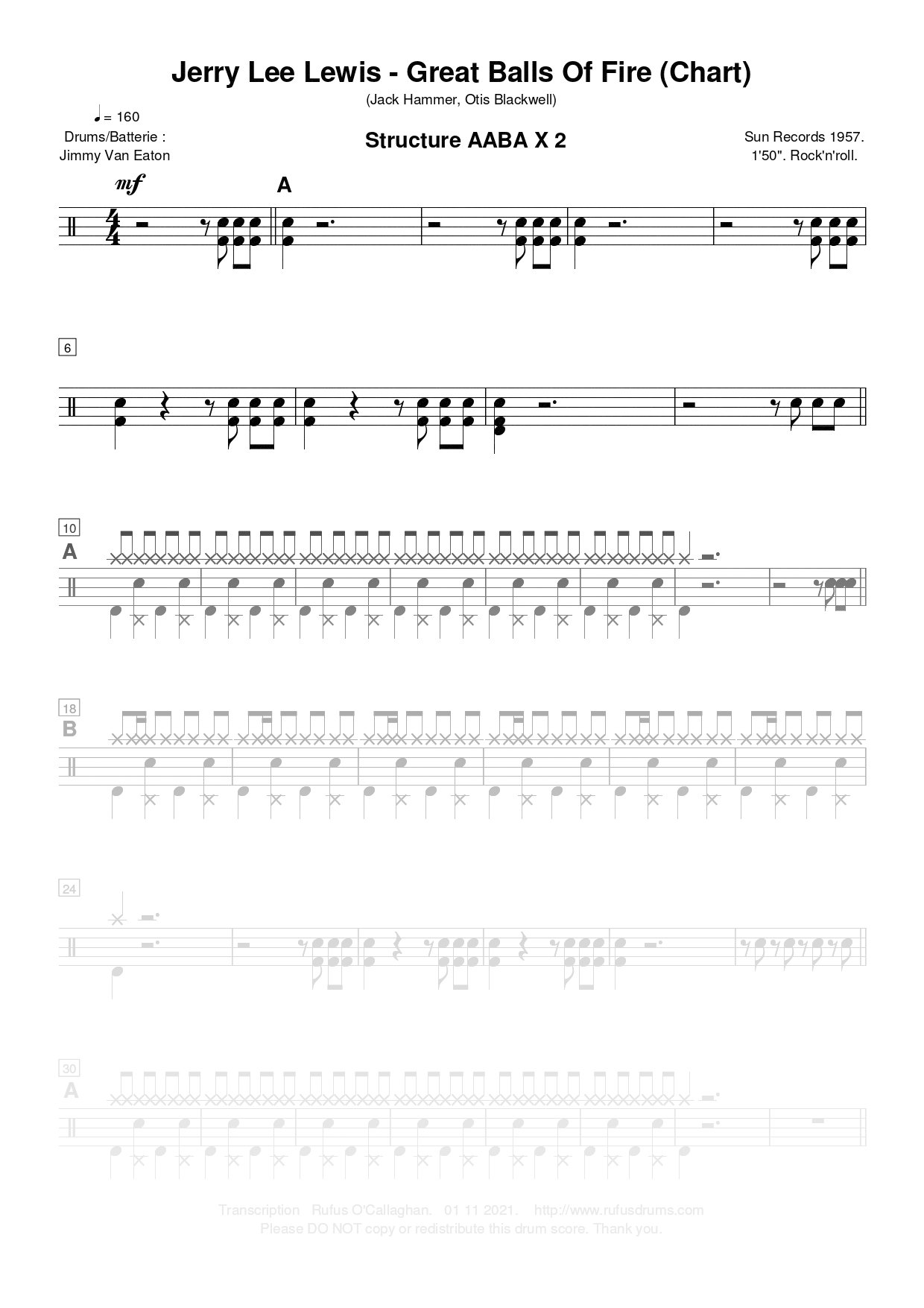 Partition de batterie – Jerry Lee Lewis – Great Balls Of Fire (Chart).