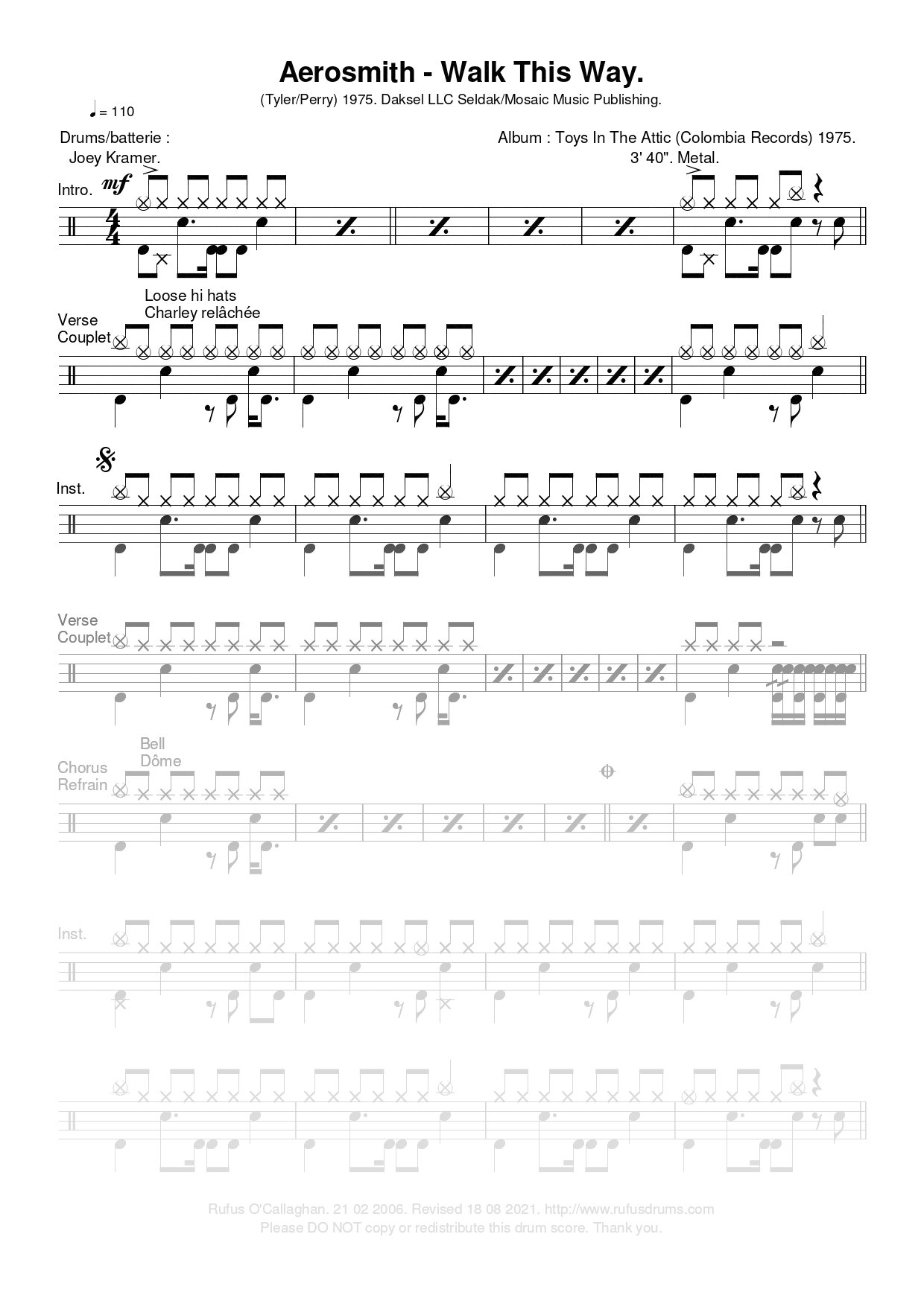 Partition de batterie – Aerosmith – Walk This Way.