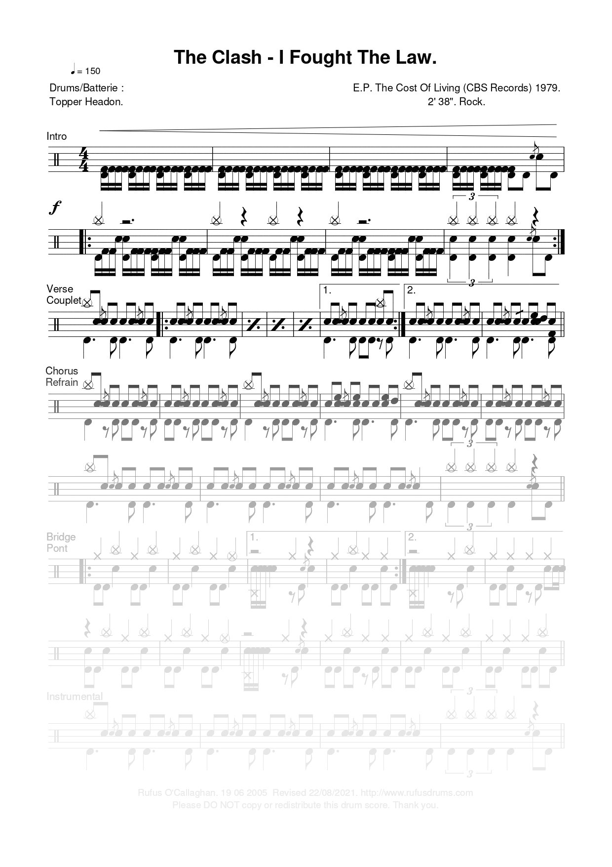 Partition de batterie – Clash, The – I Fought The Law.