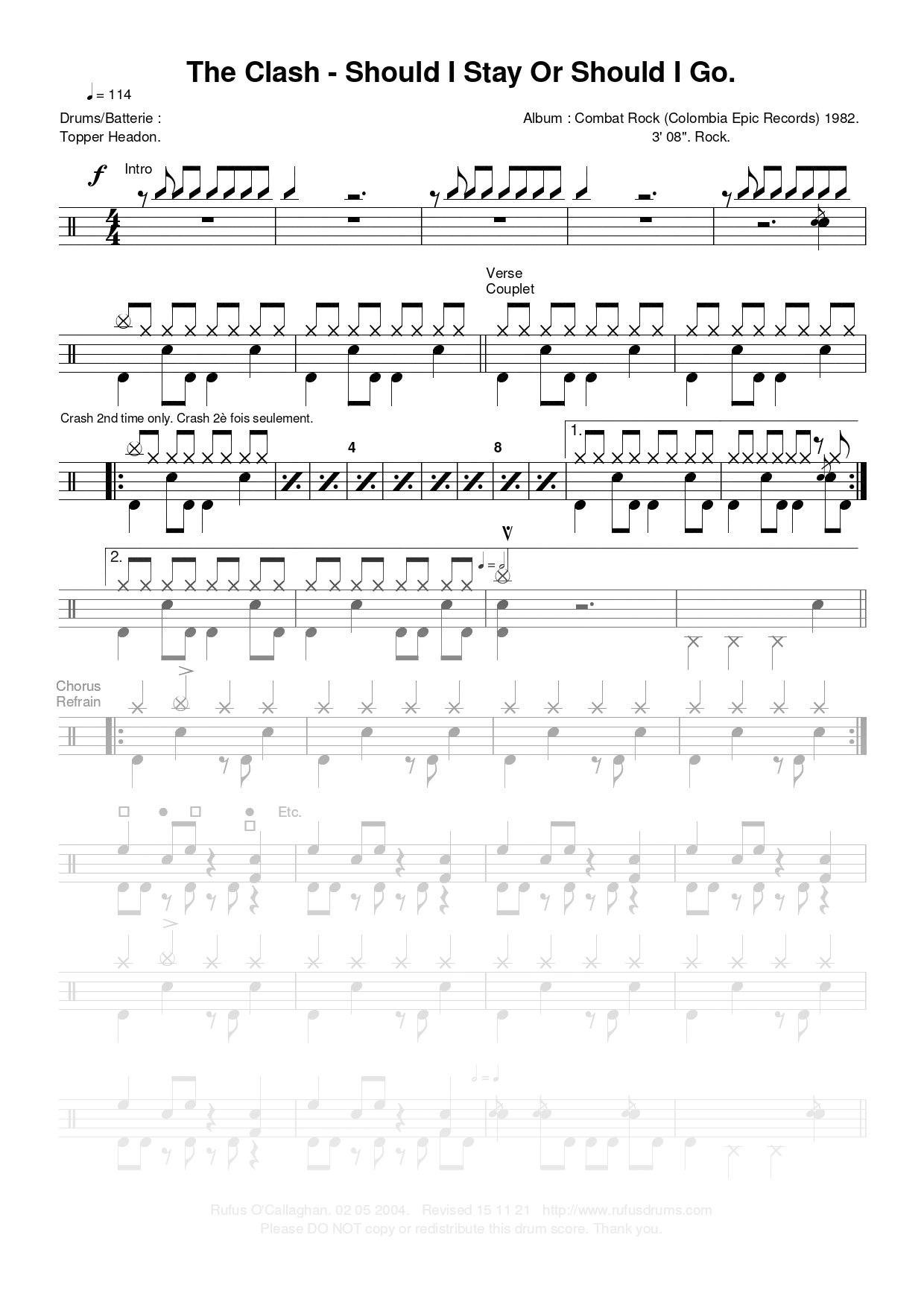Partition de batterie – Clash, The – Should I Stay Or Should I Go.