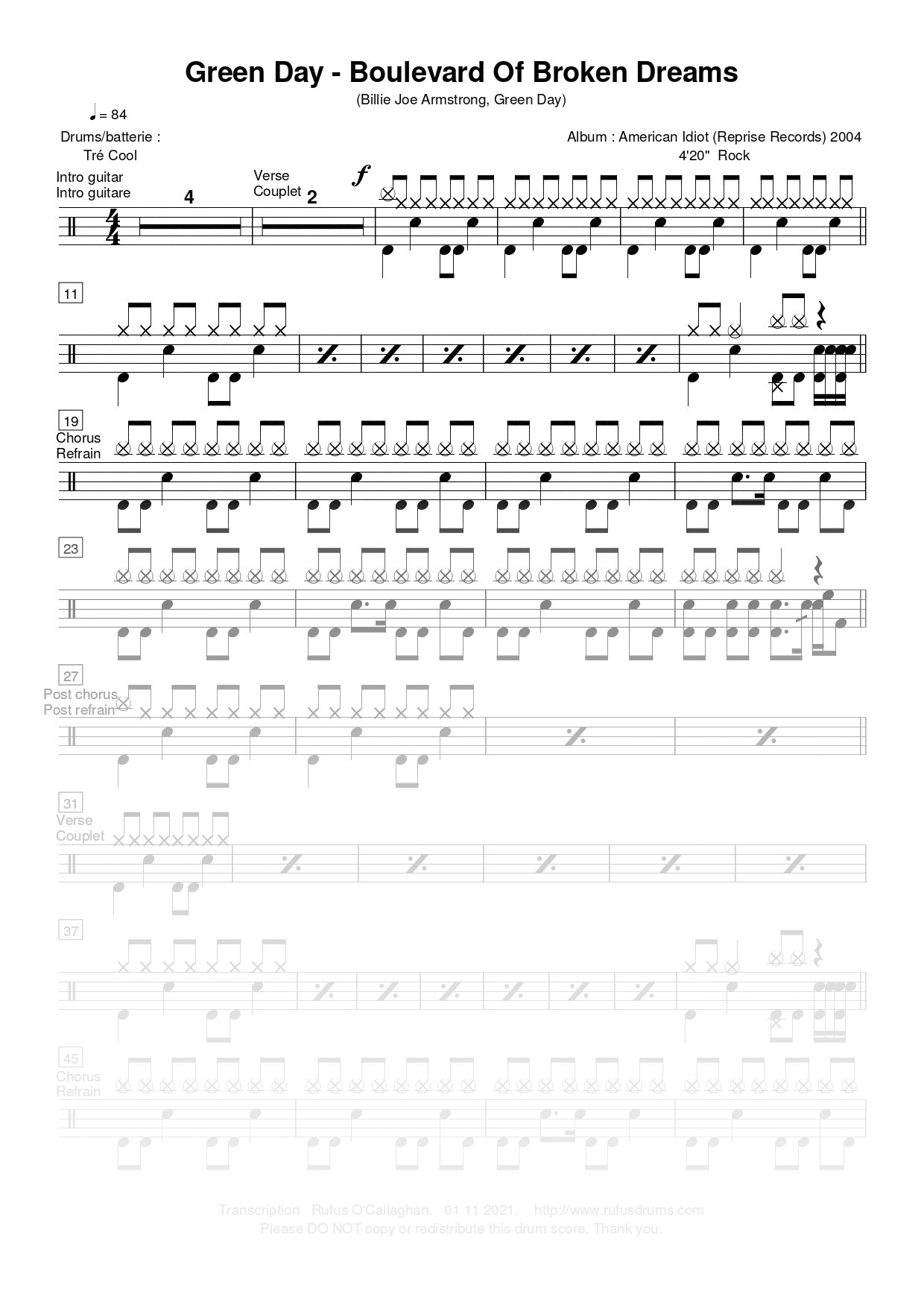 Partition de batterie – Green Day – Boulevard Of Broken Dreams.