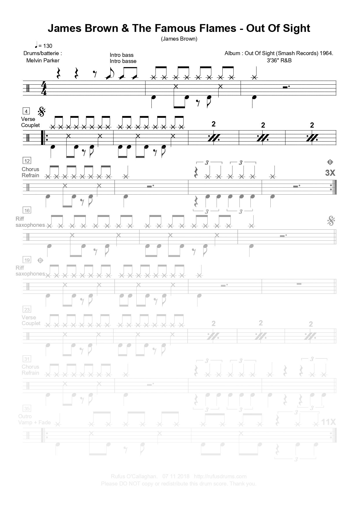 Partition de batterie – James Brown & The Famous Flames – Out Of Sight.