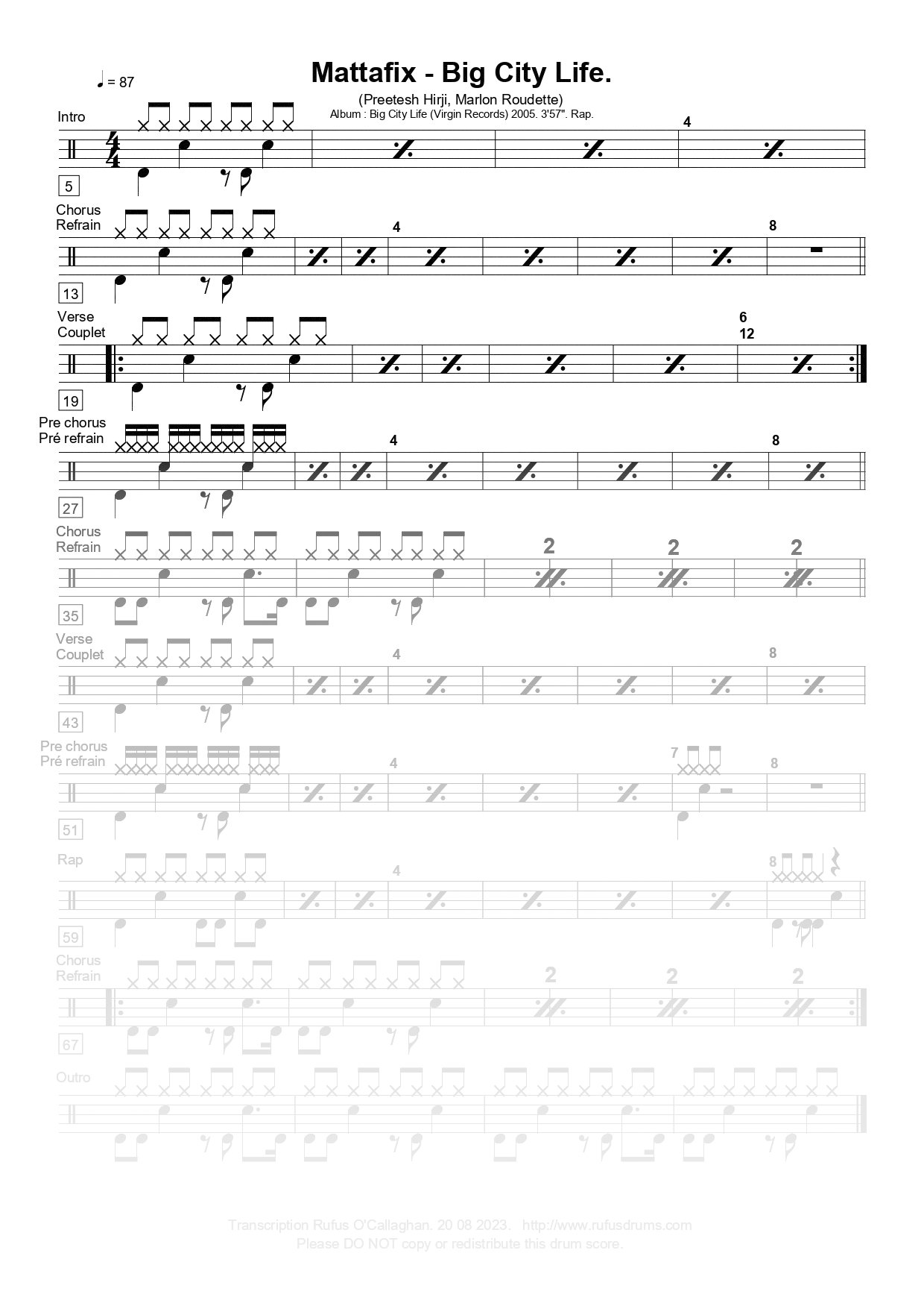 Partition de batterie – Mattafix – Big City Life.